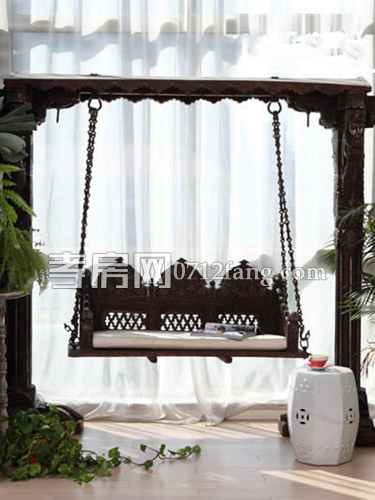 装饰Tips:中式花纹镂空精致雕刻的秋千更显优雅,摆放在阳台上让阳台休闲之中更显质感,可见主人不凡的家居品味。如此的秋千搭配阳台是值得借鉴的,轻轻荡着秋千,或发呆,或读本小说,都会让你的夏天舒适、优雅的无以复加。