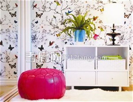 拼贴手法打造立体层次。满铺的花卉壁纸容易令空间效果太过甜腻,你可以尝试用花纹壁纸和单色壁纸混合作战,减弱花卉壁纸略显膨胀的视觉效果。