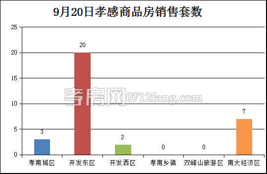 9月20日,全市的销售套数为32套,孝南城区为3套,开发东区为20套,开发西区为2套,南大经济区为7套。