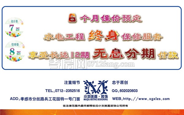 8, 活动期间所有客户专享,设计费7折,管理费8折。